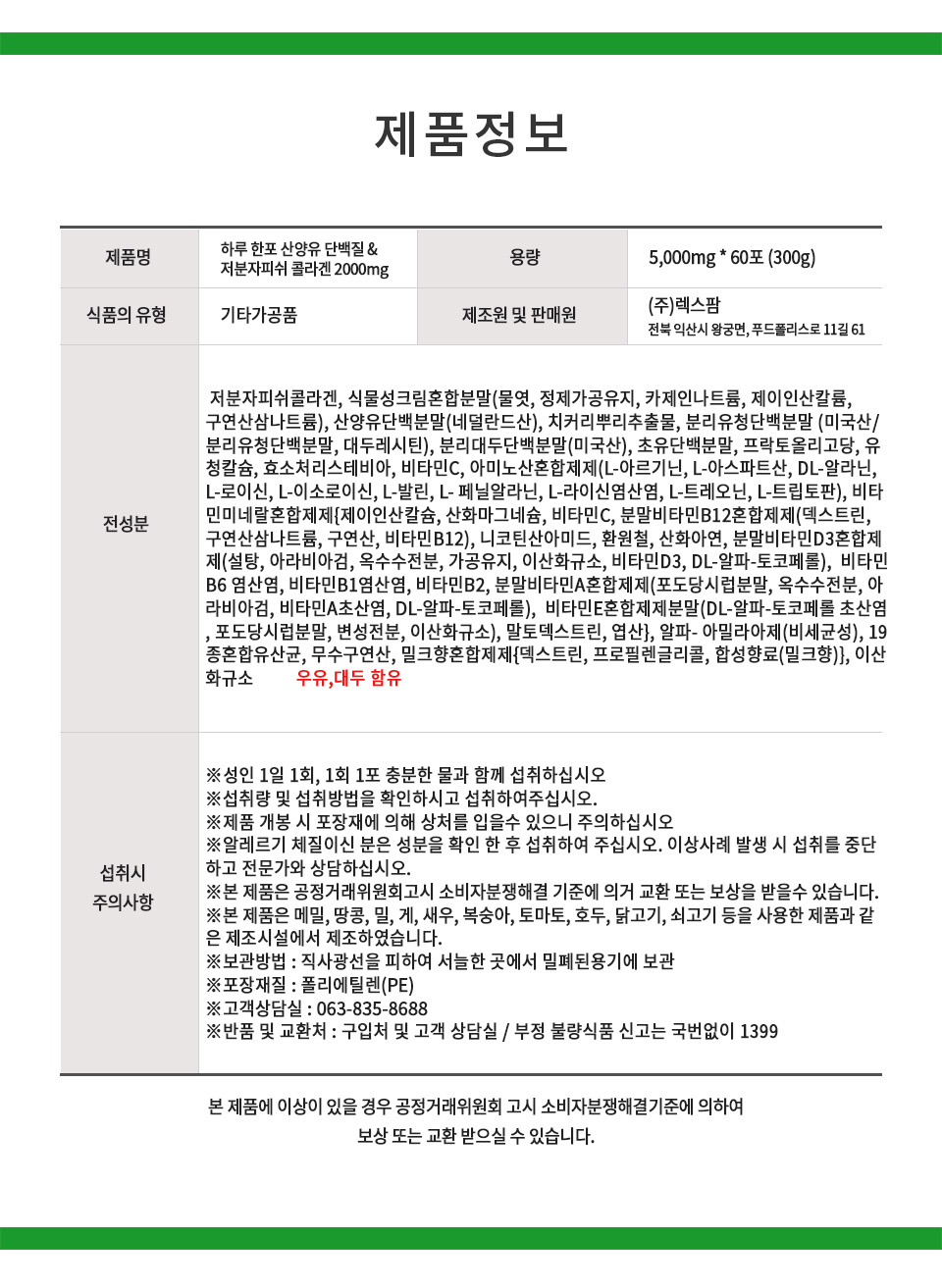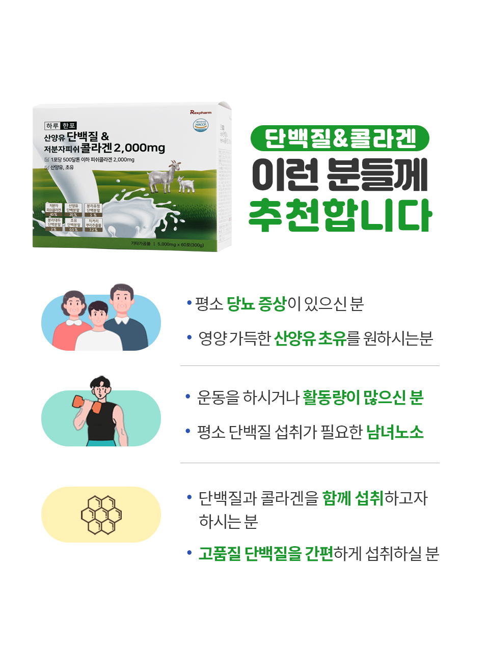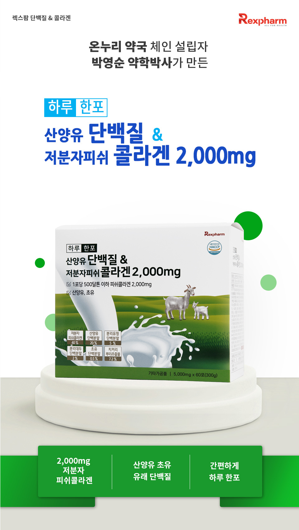 하루한포 산양유단백질&저분자피쉬콜라겐 2,000mg / 5g x 60포 (2개월분)