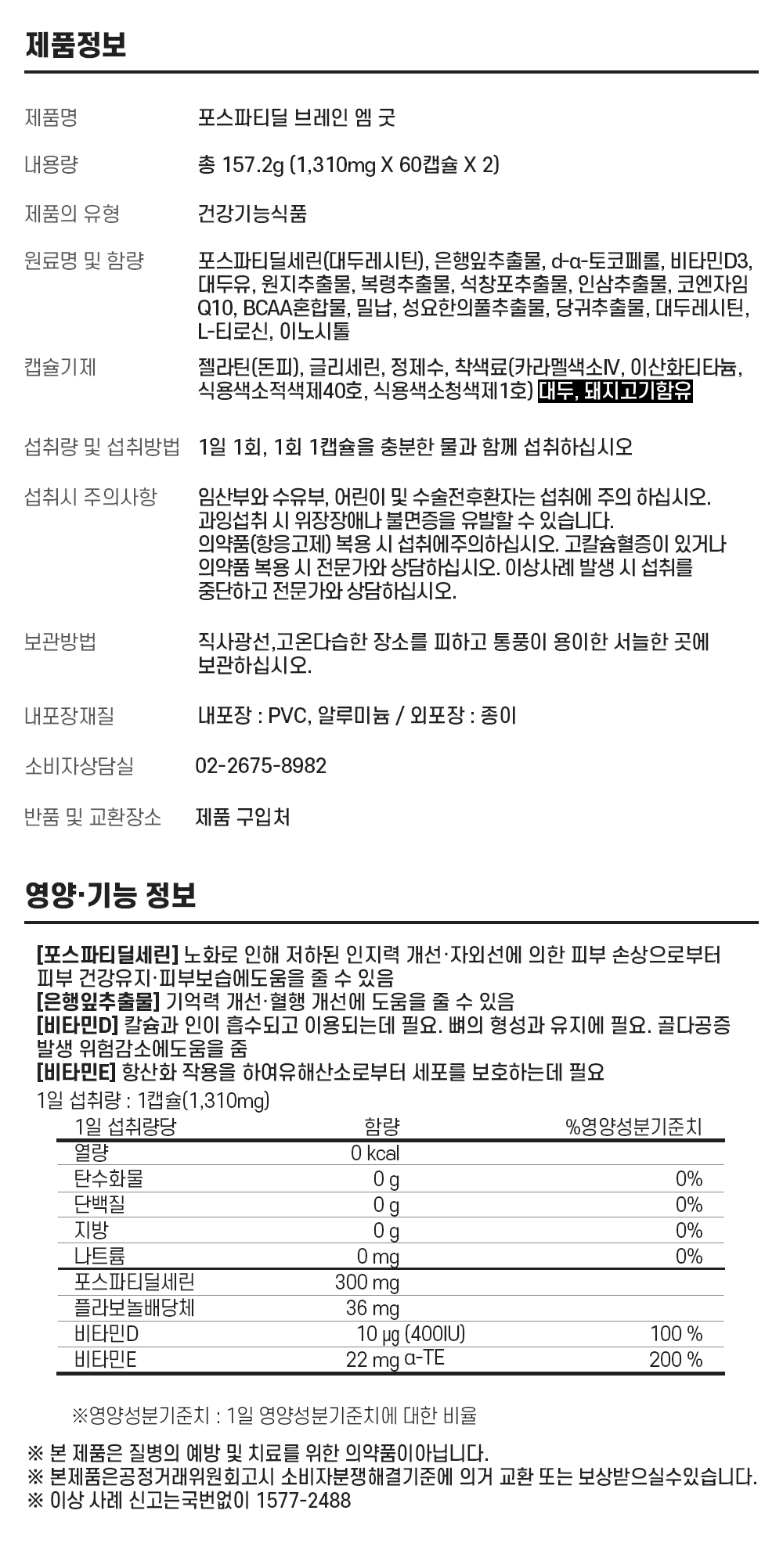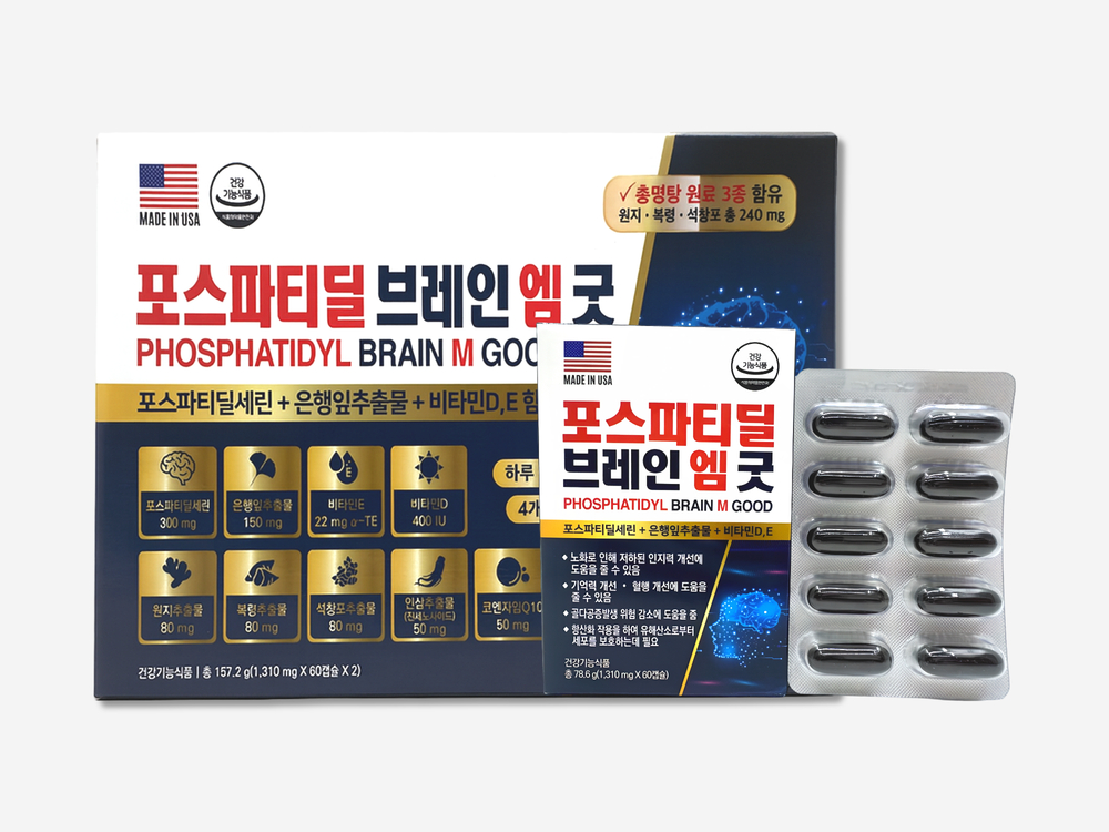 기존 뉴브레인 엠굿 제품이 2개월 분에서 4개월 분으로 확대되었습니다.하루 1일 1캡슐로 더욱 편리하게 섭취할 수 있습니다.