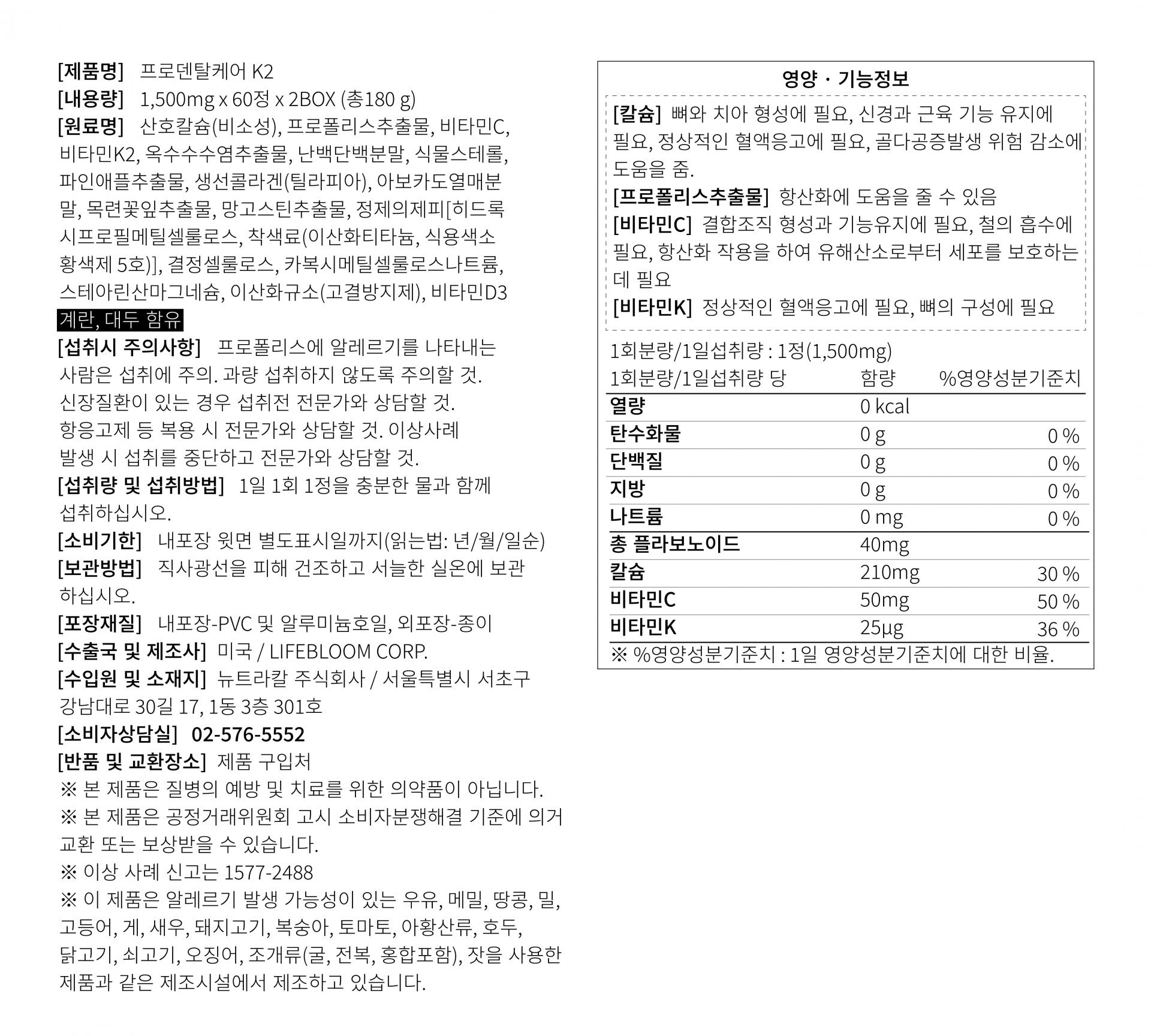 프로덴탈케어K2 / 1,500mg x 120정 (4개월분)